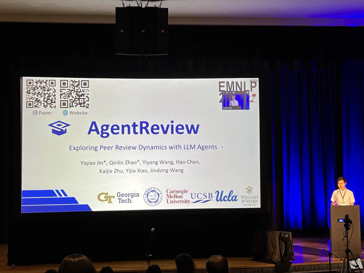 Peer review is fundamental to the integrity and advancement of scientific publication. Traditional methods of peer review analyses often rely on exploration and statistics of existing peer review data, which do not adequately address the multivariate nature of the process, account for the latent variables, and are further constrained by privacy concerns due to the sensitive nature of the data. We introduce AgentReview, the first large language model (LLM) based peer review simulation framework, which effectively disentangles the impacts of multiple latent factors and addresses the privacy issue. Our study reveals significant insights, including a notable 37.1% variation in paper decisions due to reviewers’ biases, supported by sociological theories such as the social influence theory, altruism fatigue, and authority bias. We believe that this study could offer valuable insights to improve the design of peer review mechanisms. Our code is available at this https URL.